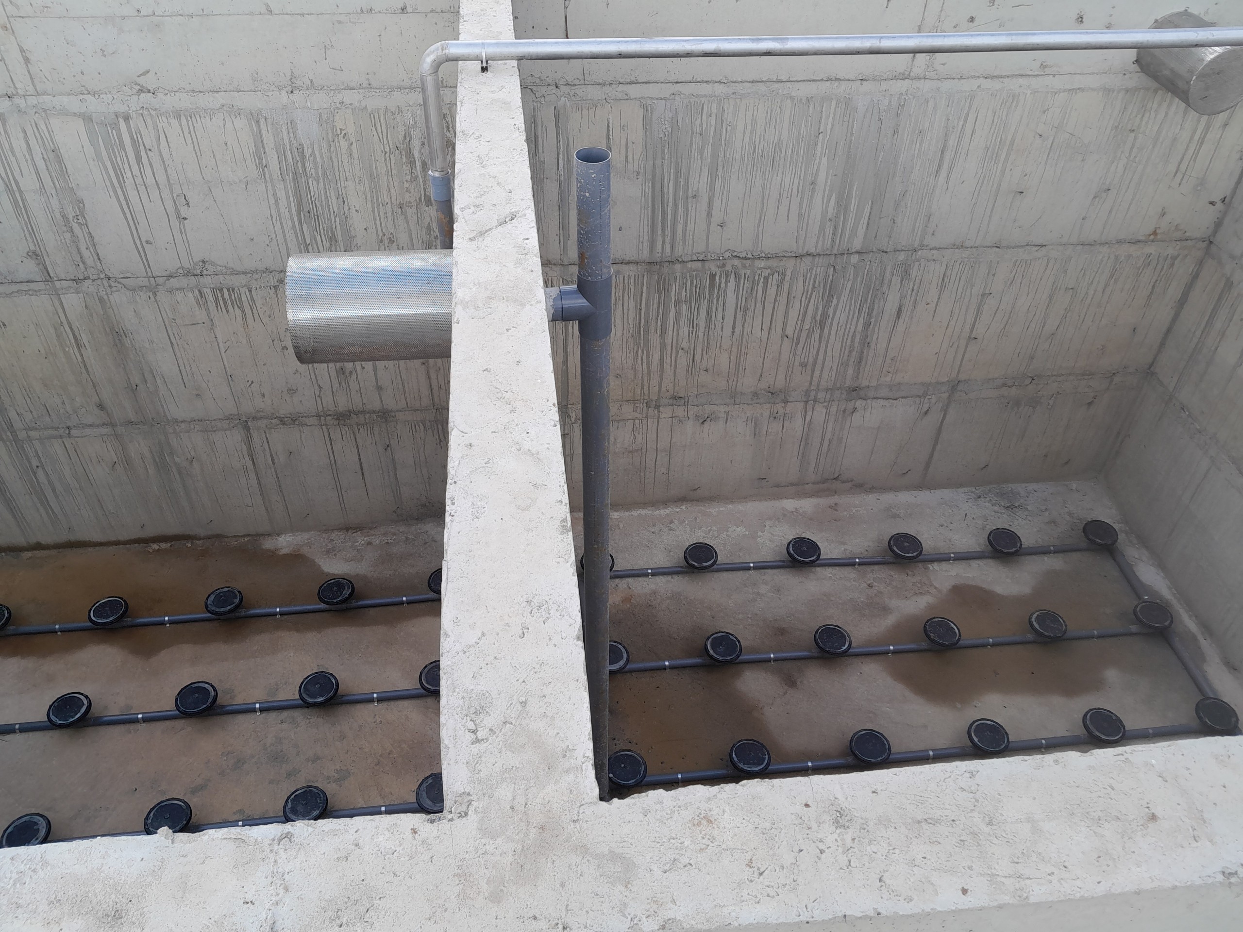Bể vi sinh hiếu khí được lắp đặt hệ thống đĩa phân tán khí dưới đáy bể, do vậy chúng sẽ cung cấp một lượng ô xy cực lớn giúp cho các vi sinh vật sinh trưởng và phát triển. Việc cung cấp ô xy là chúng ta đang mô phỏng quá trình xử lý cơ học, khi dòng chảy trong tự nhiên sẽ cung cấp khí vào trong nước, thay cho việc sử dụng một diện tích cực lớn, chúng ta sử dụng máy thổi khí để cung cấp lượng khí cần thiết để xử lý hiệu quả các tạp chất.