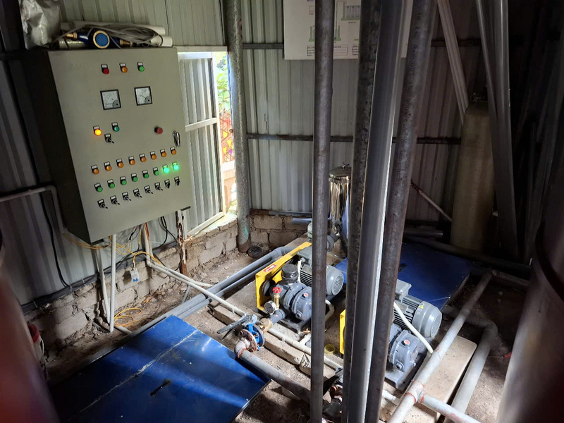 - Bể gom nước thải: 02 bơm chìm được hoạt động luân phiên theo timer thời gian lắp trong tử điều khiển, phao báo mức được hạ dòng vể 24VDC nhằm an toàn cho người vận hành. 02 máy bơm được lắp bên trong bộ tách rác nhằm tránh rác thải làm ảnh hưởng đến máy bơm chìm.